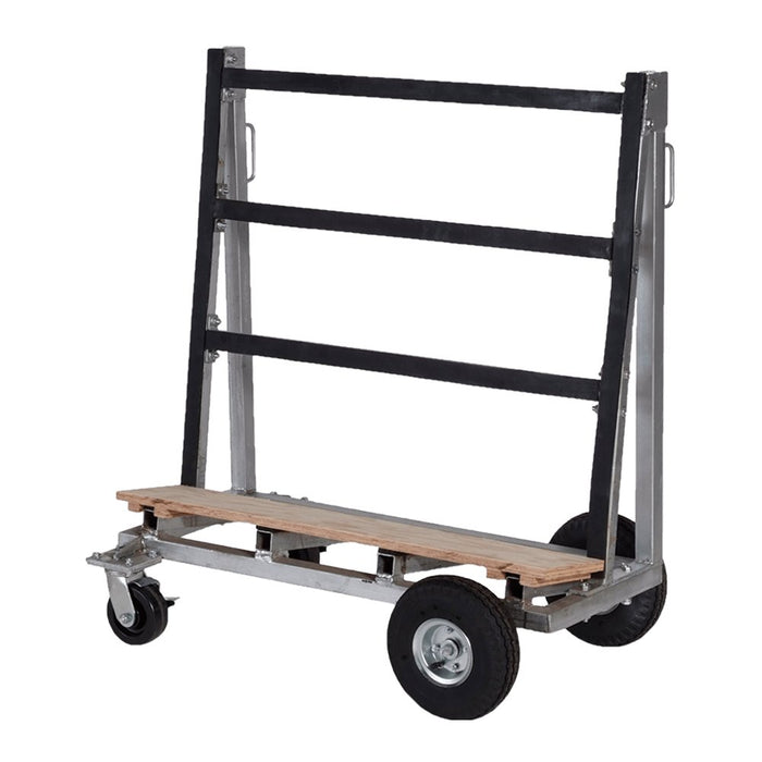 Designed to safely move material around the shop or warehouse. Bottom shelf board makes moving small products easy.