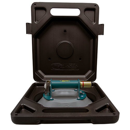 Specifically designed to lift without leaving any mark behind, this metal-handle cup attaches easily to curved, nonporous surfaces weighing up to 175 lbs [79 kg]. Not for use on thin, fragile materials.