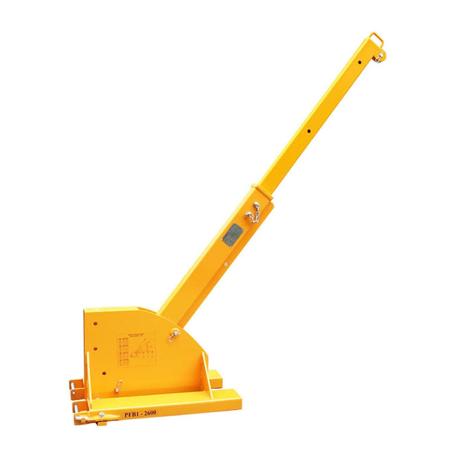 The Pivot Boom model PFB1-2600 is adjustable for height and length. The tilt facility allows extra height to compensate for the hook and sling length lost when lifting with a jib attachment.
