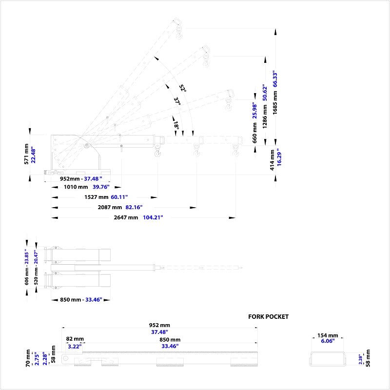 | Working load limit | Retracted: 1500 Extended: 500 |