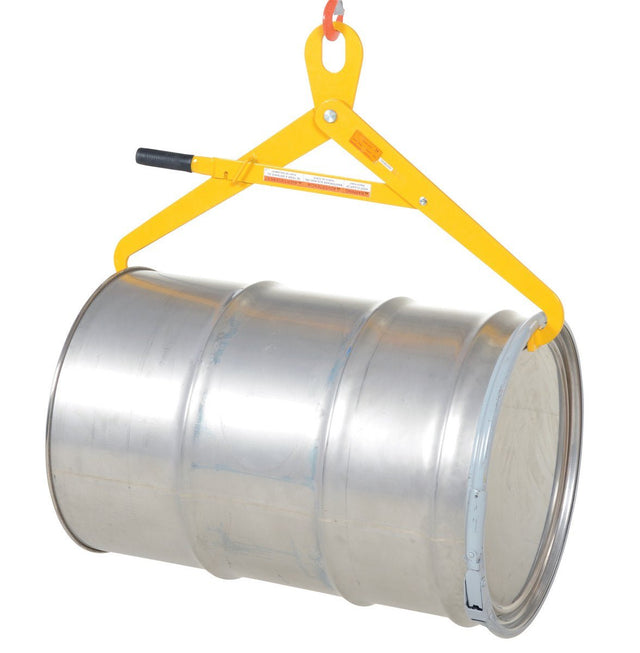 Made to lift 55 gallon steel or fiber drums with an overhead hoist. Suitable for open top or tight head steel drum which have a ring.