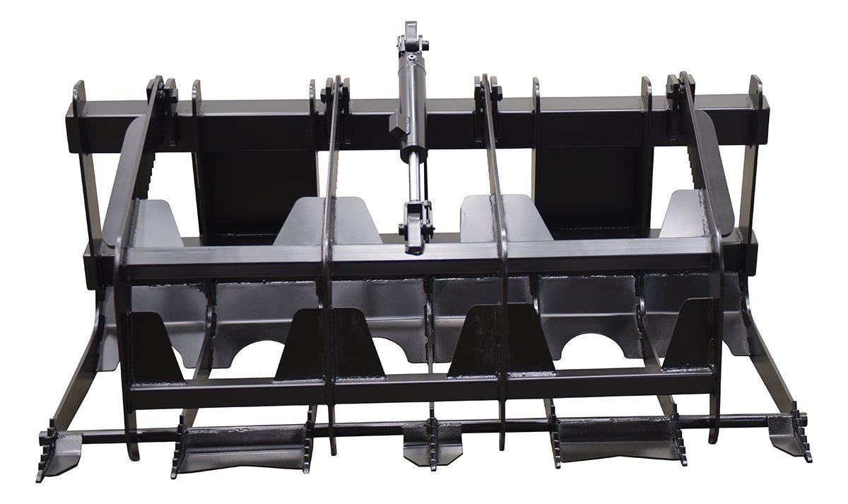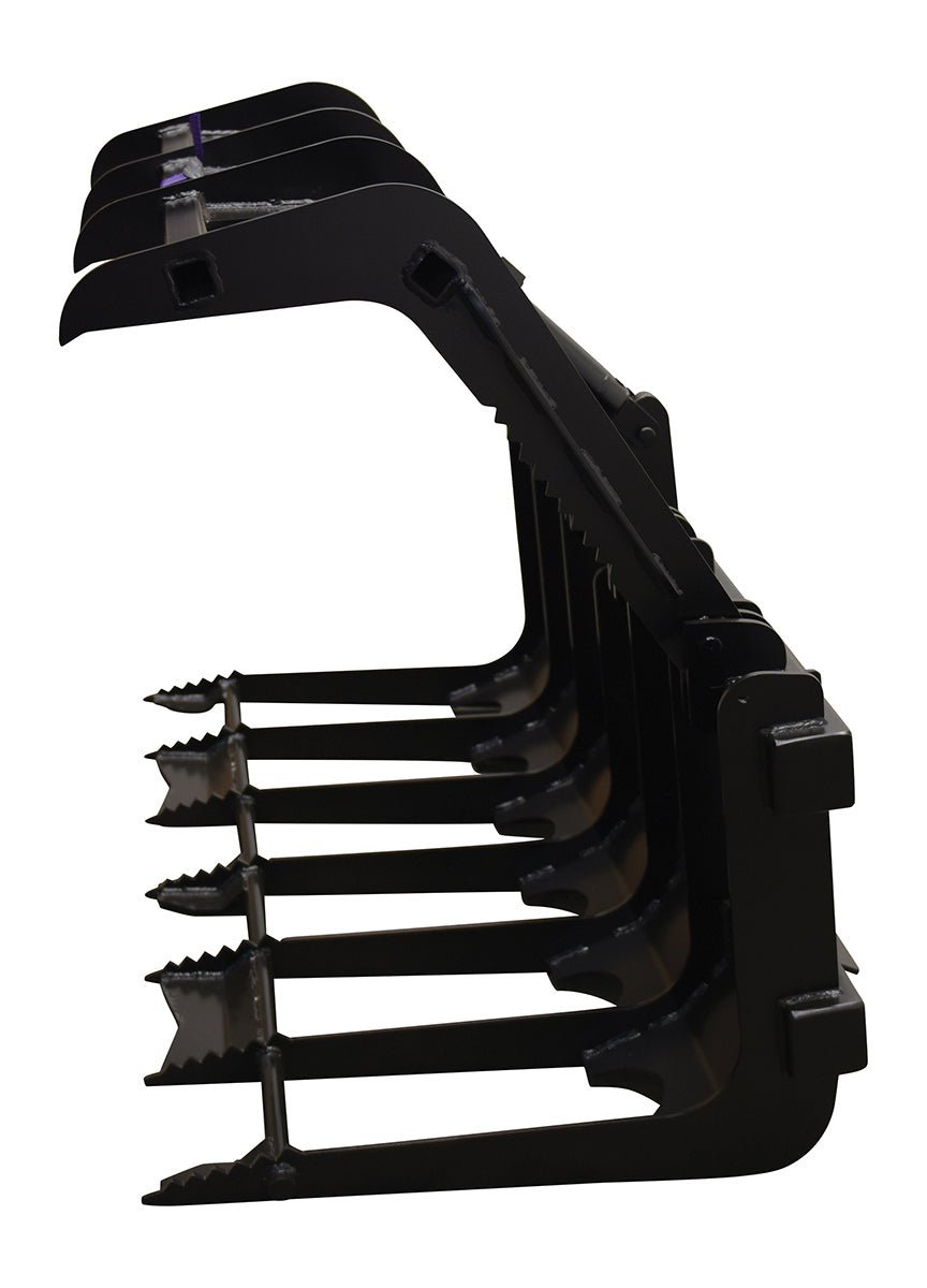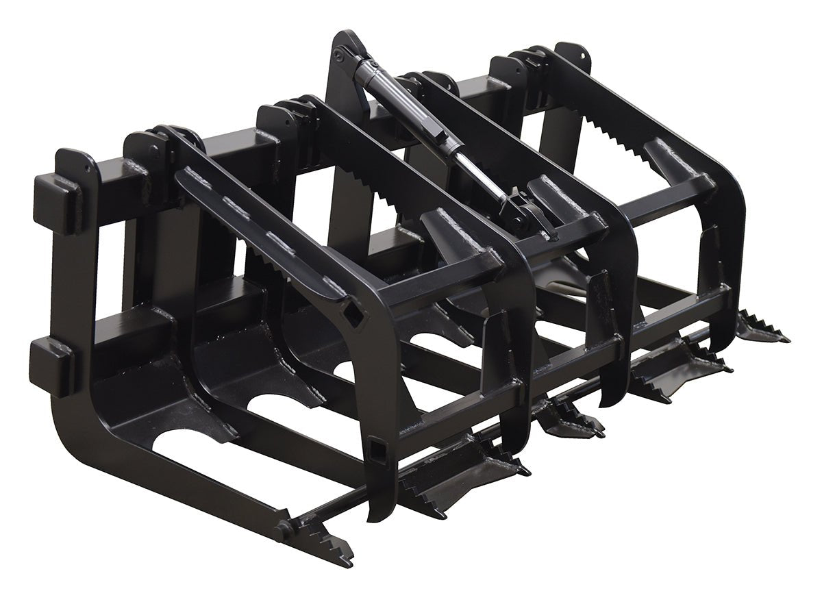 With a simple attachment, the bucket can be in place and ready to use almost Constructed of steel, the grapple bucket shows long lasting strength throughout use. With the help of the leading edge and two over the top arms, this unit is perfectly designed for clearing brush and overgrown shrubbery. The open grate style bottom allows debris and other loose material to fall through, leaving only the intended objects in the bucket.