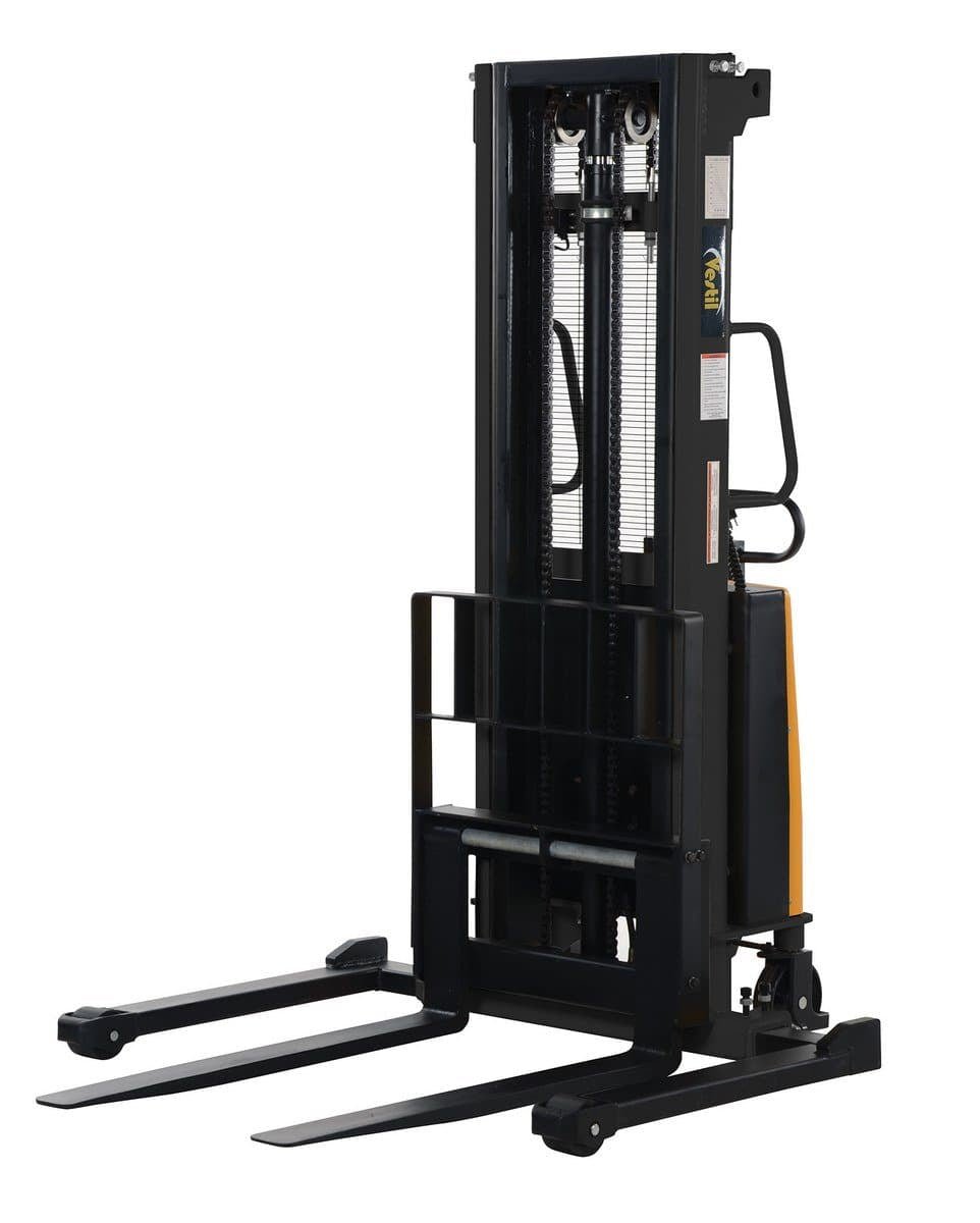 Semi-Electric Stackers with Powered Lift will raise and lower loads quickly and easily.