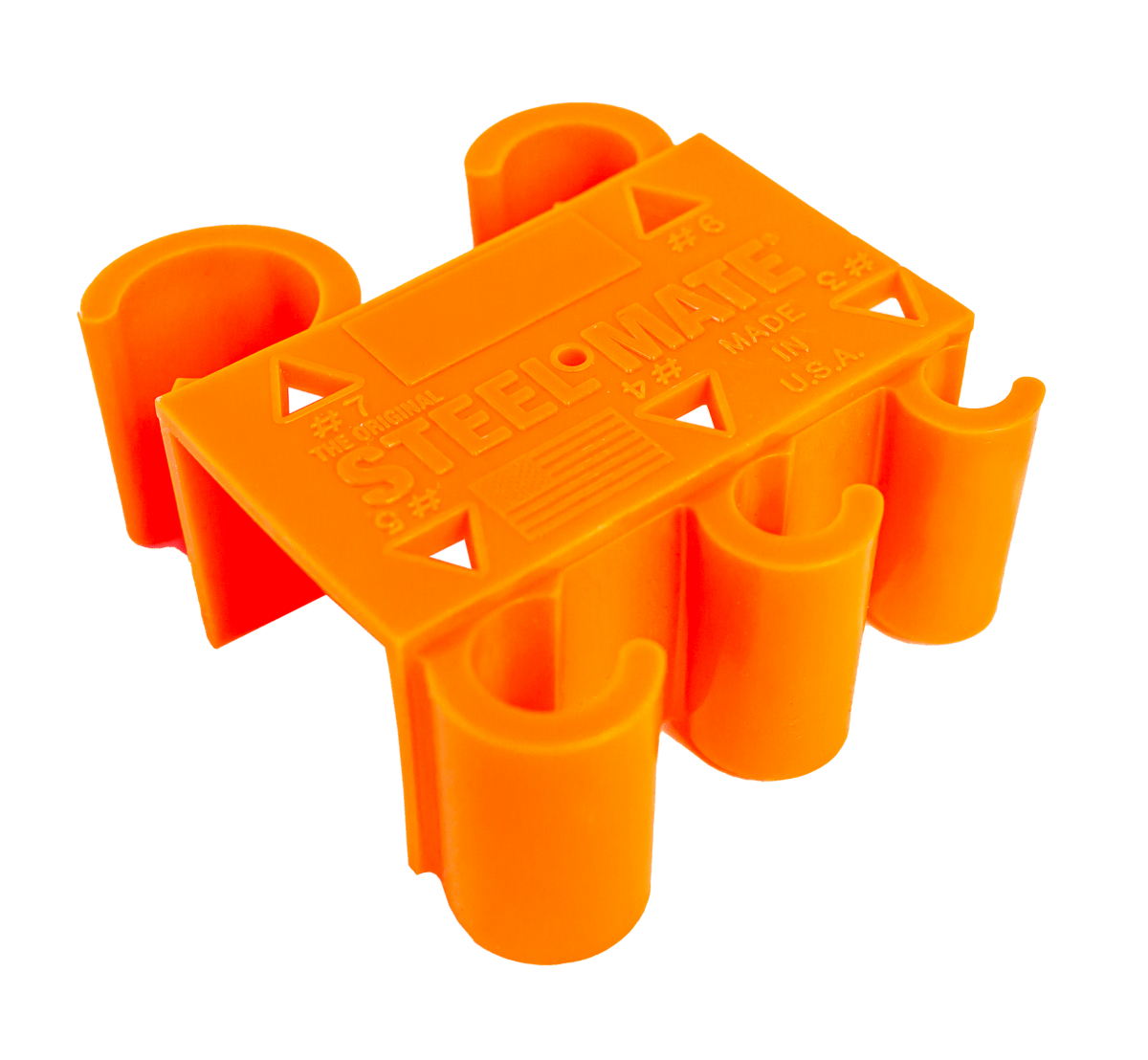 The STEEL•MATE® 1 accepts the following sizes of Rebar 3, 4, 5, 6, 7 & 8.