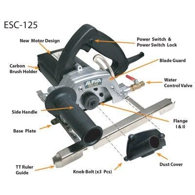 Alpha® introduces our second generation Countertop Trim Kit that incorporates our newest stone cutter, for those who work with pre-fabricated countertops or have the need to trim stone for a custom fit. The kit combines our ESC-125 Wet/Dry Stone Cutter with a carriage assembly and a 4' guide rail to create a clean, straight cut. All of the products are made of high-quality construction and are easy to setup and operate. A must for anyone that may be cutting and trimming slabs!