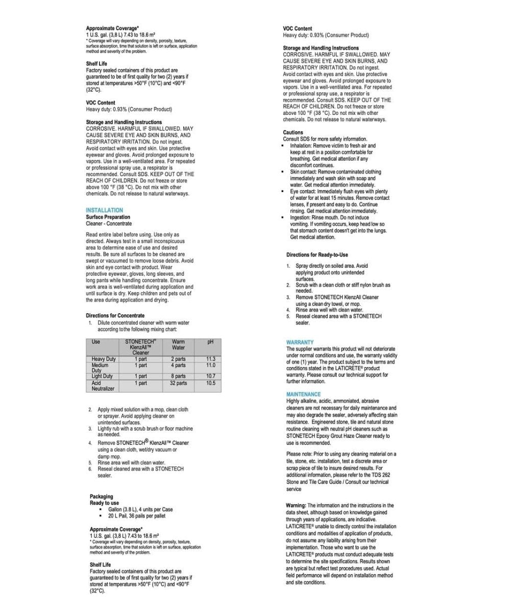 STONETECH® KlenzAll™ Cleaner is a heavy-duty cleaner made to clean the toughest soils on natural stone and tile.