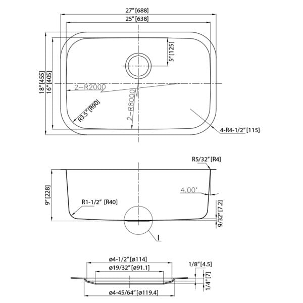Dakota Signature Standard Radius 16g Single Bowl 27″x18″ w/ grid