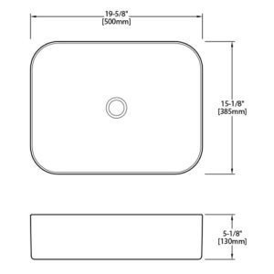 The Kylan rectangular vessel sink, crafted from high-quality porcelain, features a sleek thin-wall design that adds a touch of modern sophistication to any bathroom.