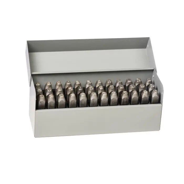 The premier grade stamps are ideal for prolonged industrial use. Each shank is tempered for an extra dose of safety, and the increased length provides a better impression. The Round Face font features characters made of a continuous line with rounded edges instead of sharp edges found in other stamps. The marking is low stress for industries that require reduced stress marking. This set consists of 36 pieces, 0 through 9 (6 used as 9), A through Z, and an ampersand (&).