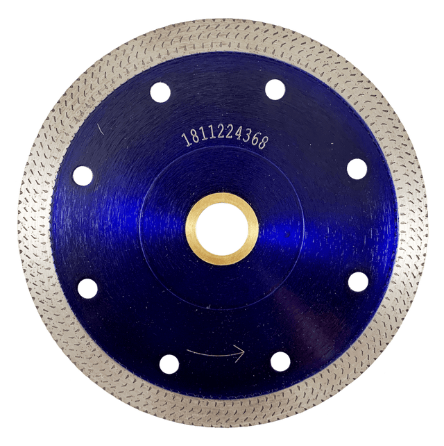 This unique shaped thin-cut super turbo blade is designed for cutting all kinds of hard stones, ESPECIALLY for tile and porcelain. This blade is designed with extra thin segments for fast and chip-free cutting.