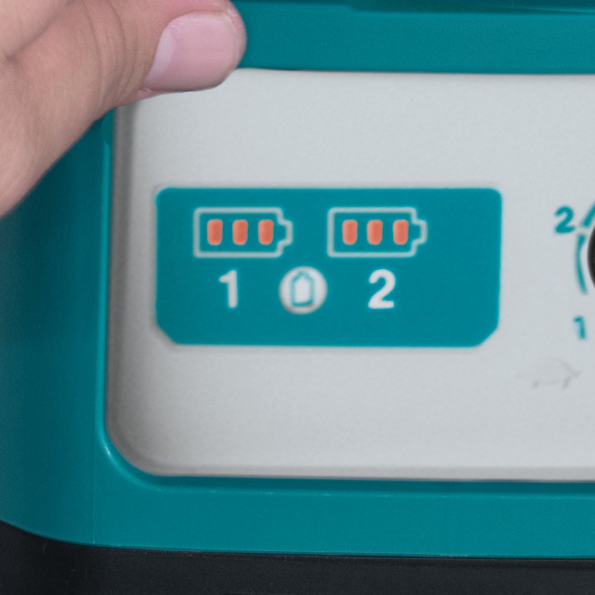 - Dual L.E.D. battery indicators show charge level for each 18V LXT® Lithium-Ion battery
