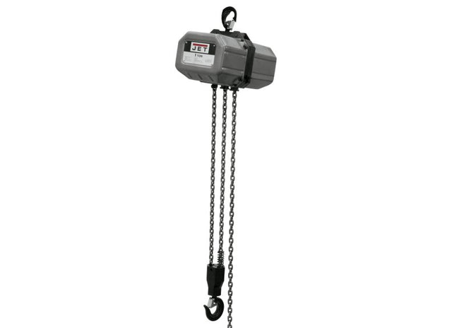 JET® SSC Series Electric Hoists combines safety and durability to operate in commercial and industrial applications. All models incorporate a slip clutch overload protection mechanism that prevents the hoist from lifting damaging loads above its rated capacity. Single phase models have a thermal overload protection design that keeps the hoist from overheating, while the three phase models feature a reverse phase relay that protects the hoist from incorrect wiring. The industry proven DC electro-magnetic brake increases safety by holding the load even when power is interrupted. The maintenance-free gear train incorporates a sealed oil bath, for reliability and durability. The JET® SSC Series Electric Hoist is available in 1/2-Ton to 5-Ton capacities with standard lifts of 10, 15, and 20 feet (custom lifts available). Not rated or designed for outdoor use or wet environments.