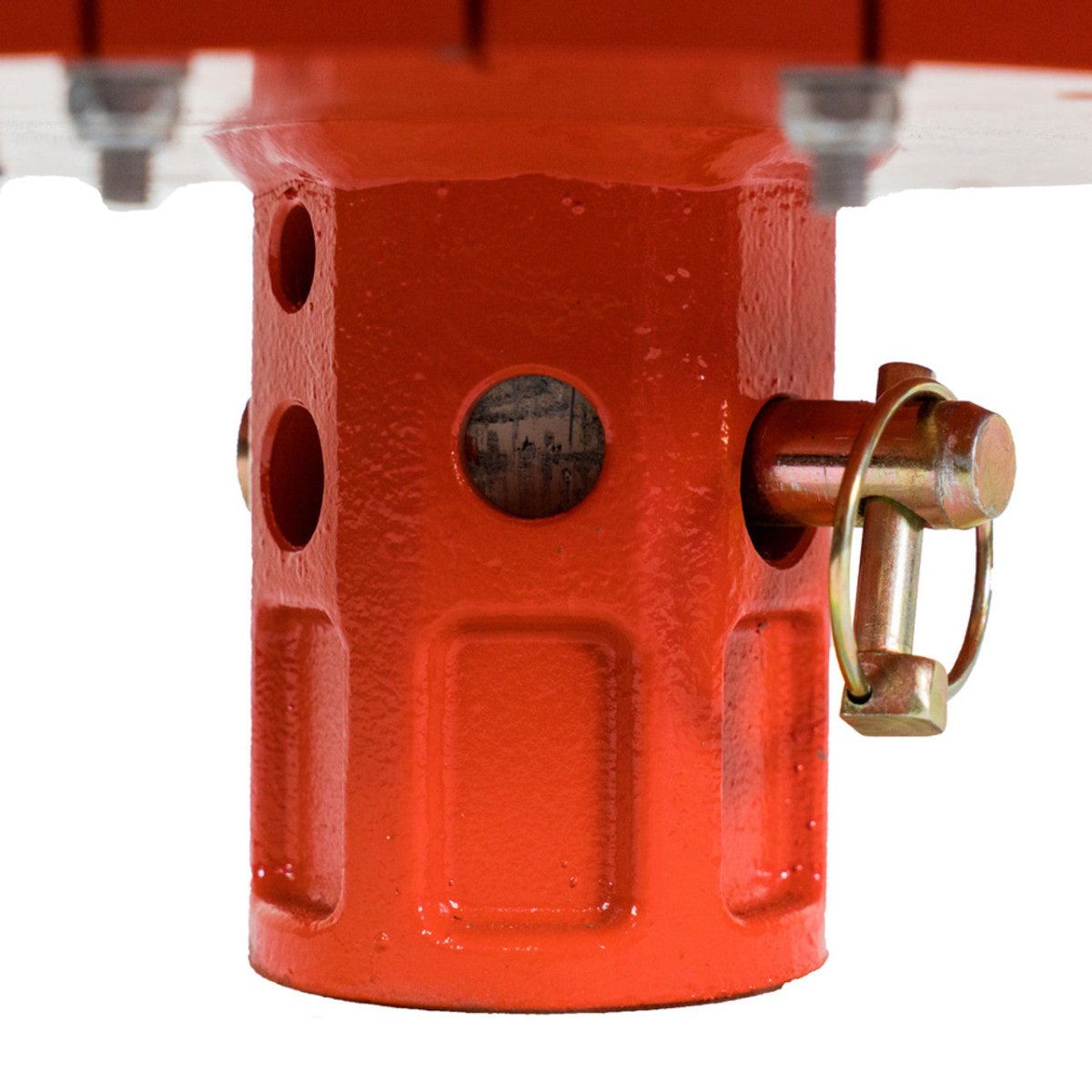 The Eterra Flip Hitch is designed to be used with Eterra Augers and cement mixer bowl attachment. This hitch is designed so that you can lock your auger swivel in place then rotate it up to 45 degrees for upward motion. In this position, your cement mixer can rotate safely and drill horizontally or mix your concrete.