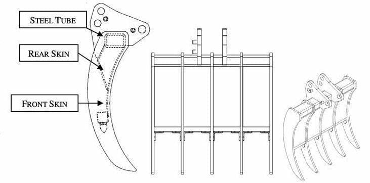 - Wider tine spacing on the grapple rake allows for sifting out smaller materials.