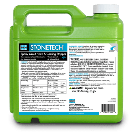 STONETECH Epoxy Grout Haze & Coating Stripper is a fast-acting, water-based gel designed to safely remove tough epoxy grout haze and various coatings from vertical and horizontal surfaces.