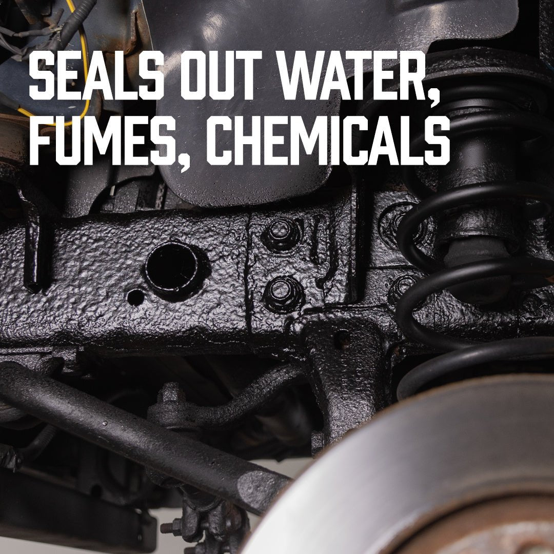 Topcoat with confidence. Our Black rubberized undercoating spray is paintable and won’t bleed through once fully cured. This allows for a clean, uniform finish without compromising the integrity of the undercoating.