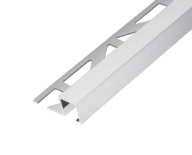 SQUARELINE trims are available in a wide range of colors and finishes in PVC, aluminum, stainless steel, brass, or chrome-plated brass and in heights ranging from 4.5 to 12.5 mm.