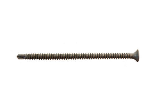 Weather resistant, ceramic coated self-drilling screws. Available in lengths from 1-5/8" up to 6". Used for attaching continuous insulation, lath, & building wrap to heavy gauge steel studs.