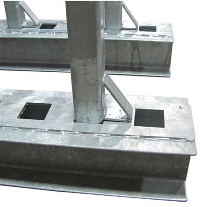 The load capacity: Each post is rated for 11,880 lbs, the set of posts for 23,760 lbs. The Hippo comes with 16 posts, giving a total slab bundle rack capacity of 190,080 pounds.
