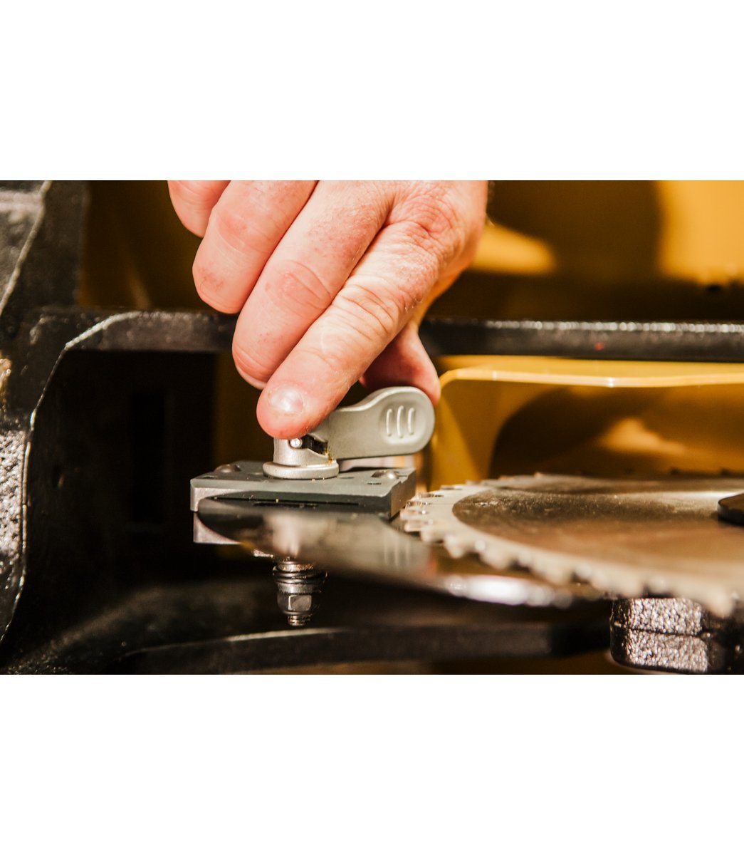 - Adjustable angle indicators on the blade bevel scale for repeatable bevel cuts