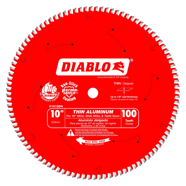 10 in. x 100 Tooth Thin Aluminum Cutting Saw Blade - D10100N