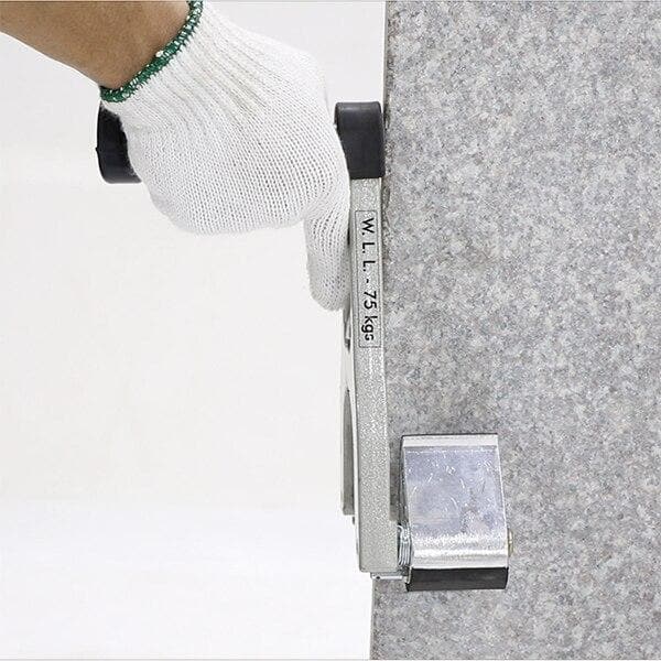 This device significantly reduces stress and the potential injuries to the fingers, wrists and back. It also reduces physical fatigue. The Stone Panel Carrier with Cable works by clamping onto the edge of panels, creating a sturdy temporary handle for the workers who are carrying them. It allows tradespeople to lift and move panels with a straight back, thereby avoiding back injuries. These carry clamps are also available without cable for a higher lifting capacity.