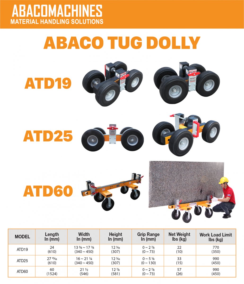 ATD19, ATD25, and ATD60 are further versions in the Stone Slab Dolly series. This collection handles customer difficulties and offers solutions for dealing with transporting material slabs.