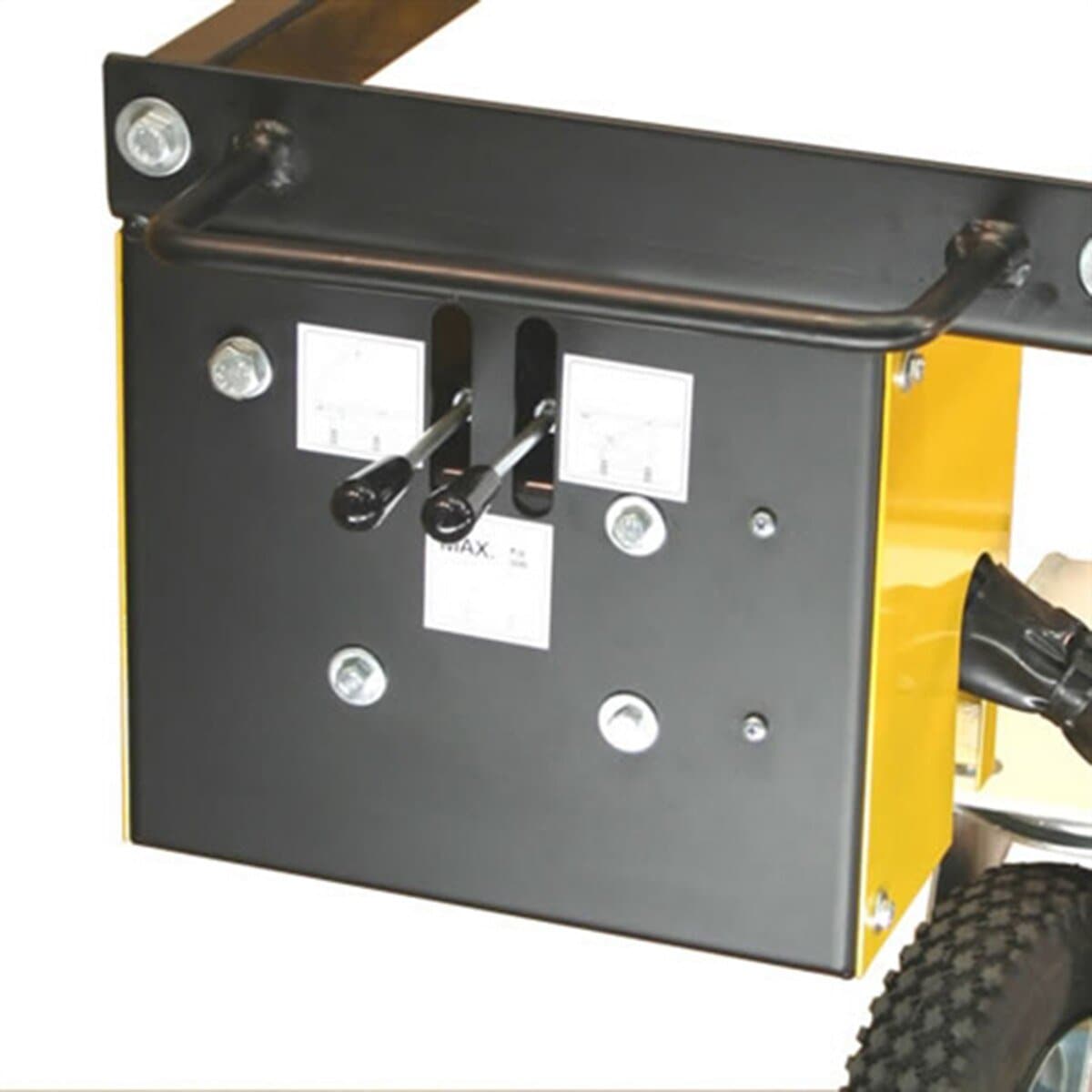 The Achilli Tilting Stone Slab Transport Carts has multiple height adjustments from 25" to 38" (635mm x 965mm) for loading saws, cnc machines, work tables, work Benches, etc.