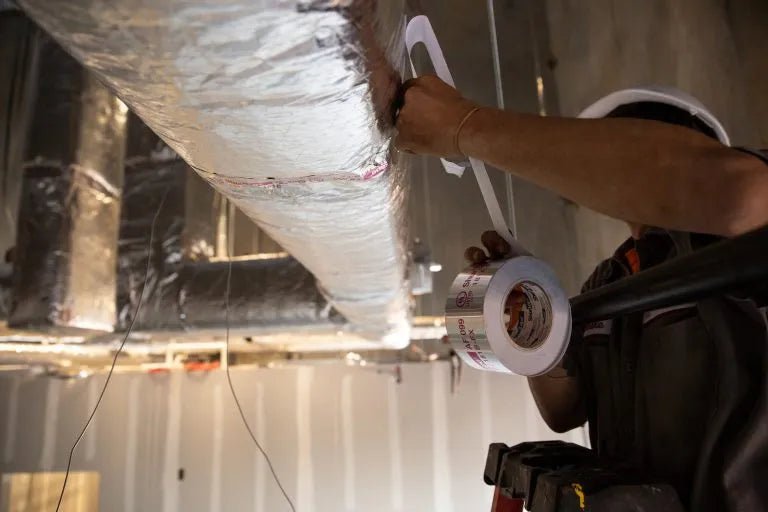 Aluminum foil HVAC tape for joining and sealing joints, connections and seams on rigid fiberglass ductboard and flexible air duct, and as a UL 181A-P listed product, can also be used in place of mechanical fasteners on rigid ductboard.