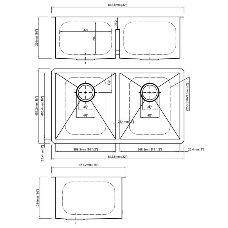 The modern design of this Dakota Plumbing Products Micro Radius 304 Stainless Steel sink provides a beautiful update to the standard radius sinks of old. Each sink features a 5/8 Inch corner creating a smooth clean modern look for your kitchen. A channeled bottom creates an even flow of water to the Signature 3 1/2 Inch Center Drain. The Peacekeeper Sound Absorption System provides noise reduction and tranquility enhancement while keep condensation from gathering underneath and damaging your cabinets.