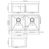 Dakota Sinks DSZ-5050LD Signature Z-Series 32 Inch Zero Radius 50/50 Low Divide Double Bowl Undermount Stainless Steel Kitchen Sink with Bottom Grid