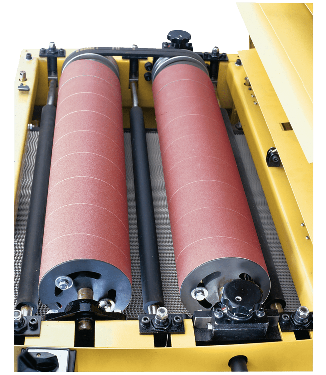 Finally, a production class Dual Drum Sander that is loaded with features. This machine features a 5HP motor to power the twin poly V-belts.