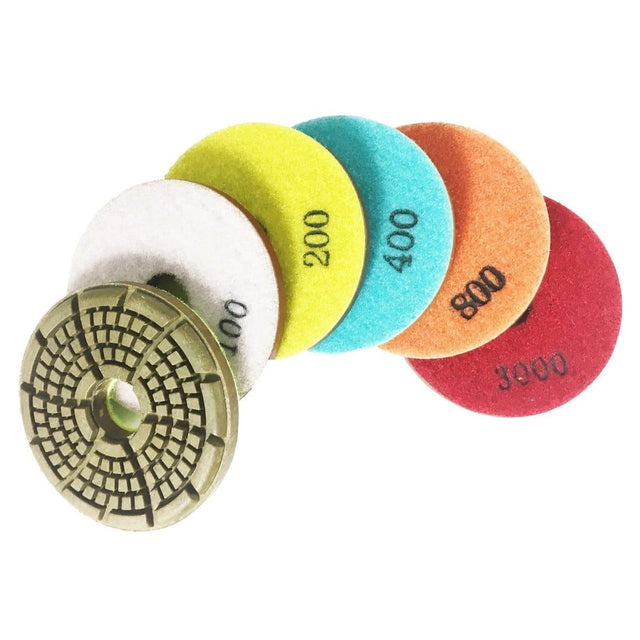 Diamond Tool Store Granite Pad 3.5" Pads resin bonded concrete polishing pads with velcro backing. Achieve smooth surfaces and high shine with these pads.