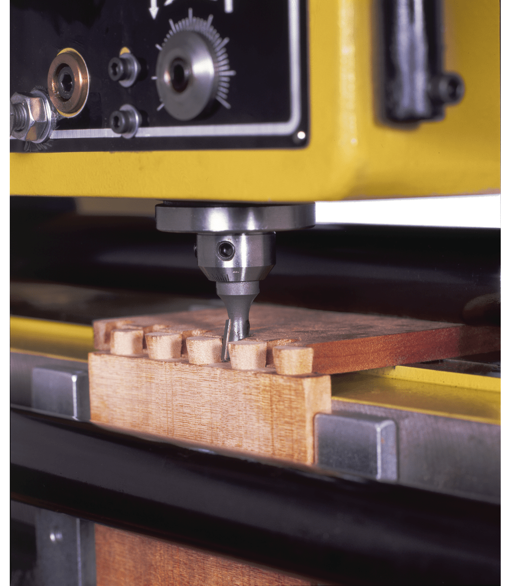 The POWERMATIC® DT45 manual dovetail machine is used to cut dovetails for drawers and various furniture components.