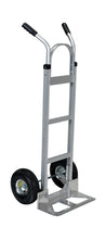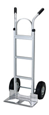 These hand trucks can transport boxes or crates wherever they are needed. Transport loads smoothly and evenly over rough or uneven floors. Ships knockdown. Choose steel or aluminum, available with pneumatic or solid rubber wheels. Assembly required.