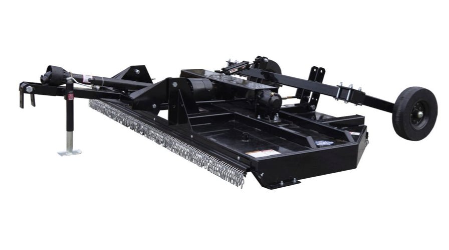 These cutters are designed to work with minimum 42 hp or 52 hp tractors and are available in 8’ and 10′ widths. The cutter uses a dual spindle with two free-swinging blades each, which reduces the shock of impact when a stationary object is contacted. A slip clutch and dual shock couplers protect the gearboxes and drivelines from damage. These come standard with driveline shields and clutch shields along with front and rear chain discharge shields. Two types are offered: a lift type and a pull type.