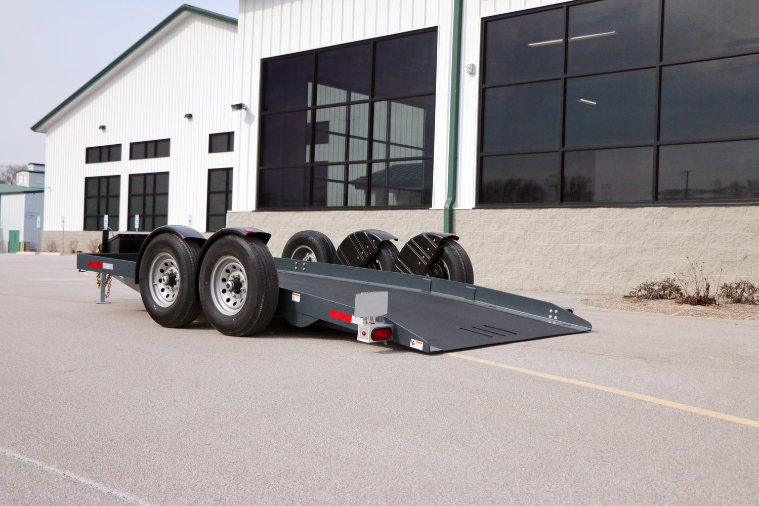 Designed with 7,000 lb dual torsion axles with electric brakes, it ensures superior stability and controlled stopping power for transporting large equipment, vehicles, or materials. The 177" long x 80" wide surface loading area provides ample space for oversized loads, while the powder-coated black finish enhances durability and longevity.