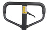 An economical way for one person to move heavy pallet loads without the use of a fork truck! Includes two articulating steering wheels and two front load rollers. Ergonomic design requires only 75 pounds of pulling force when fully loaded. Steering wheels include bearing dust covers for added life. Nose wheels are located on the front edge of each fork to assist in clean pallet entrance and exit. Wheels are constructed of Poly-on-Steel unless otherwise noted. Reinforced triple-formed steel forks provide twice the strength of standard single-formed forks. 7" wide forks are standard, except for model PM10-2245 which are 8-1/4" wide forks. Equipped with internally mounted solid steel adjustable push rods. Spring loaded handle automatically returns to vertical position when not in use. Hydraulic pump design facilitates easy-access seal replacement. Chrome-plated hydraulic pump piston for long seal life.
