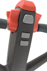 - Multi-function handle with integrated PIN code LCD display, emergency reverse, raise-lower buttons, horn, turtle speed button, and foward-reverse butterfly knobs.