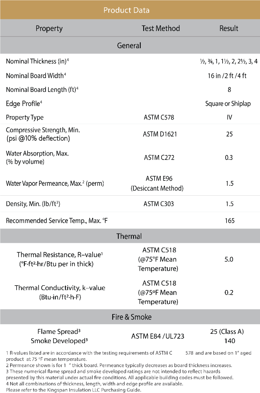 GreenGuard GG25-LG XPS Insulation Board Product Data Table