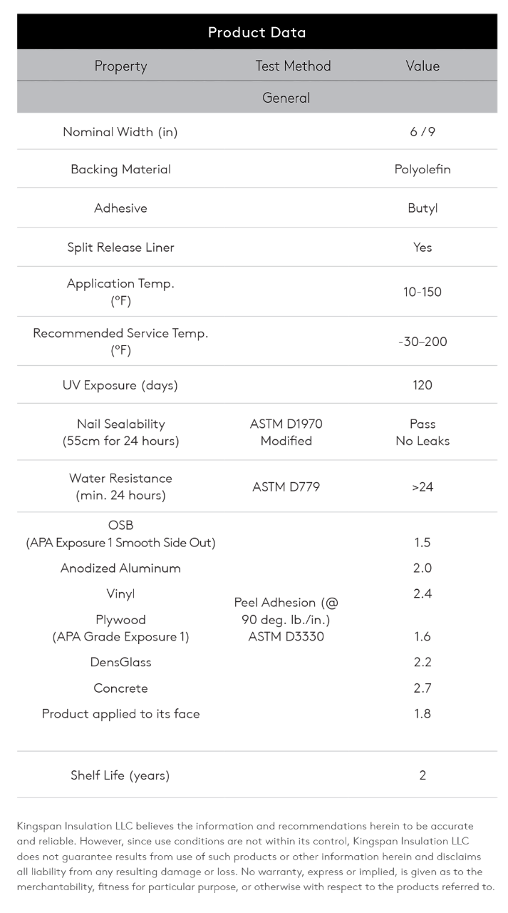 Kingapan GreenGuard SuperStretch Flashing Product Data Table