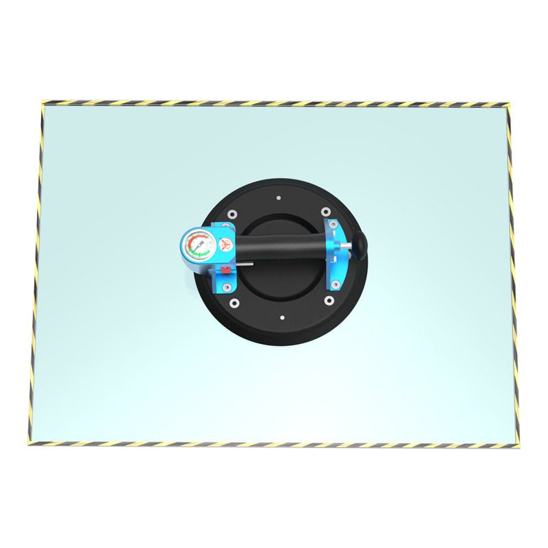 The Hand Vacuum - Cup Lifter is made of strong durable aluminum together with an ergonomic handle and includes an integrated vacuum gauge and priming pump. This vacuum cup lifter has the capacity for nearly any manual lift. It is rugged and dependable. Pulling the hand lever repeatedly produces the vacuum, 3 strokes produce the high vacuum. The vacuum can be continuously monitored via the pressure gauge. Additional pumping can be done at any time.