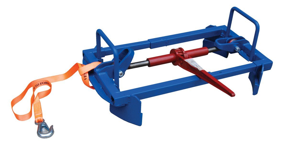 Adjustable attachment point allows drum to be lifted from a horizontal to a near-vertical position. Easily attaches to any drum with both a top and bottom lip. Adjustable top attachment point for use with different height drums. Steel construction. Baked in blue powder coat finish for added toughness. Hook Plate sold separately.