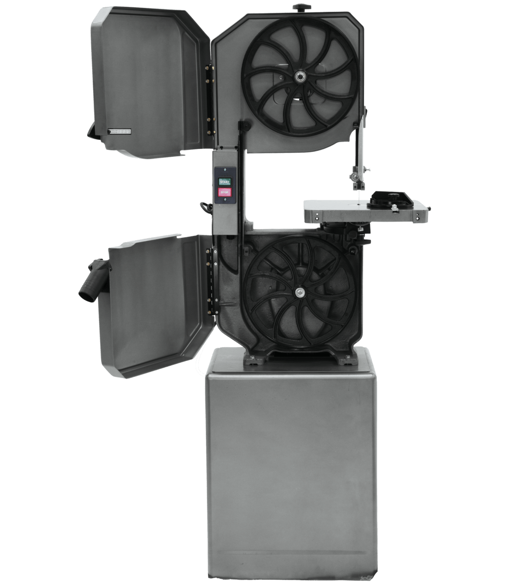 • Hinged wheel covers and convenient blade tensioning wheel for easy accessibility and fast blade changing and adjustments