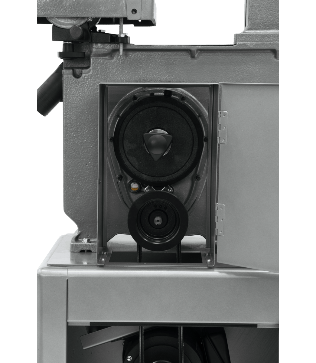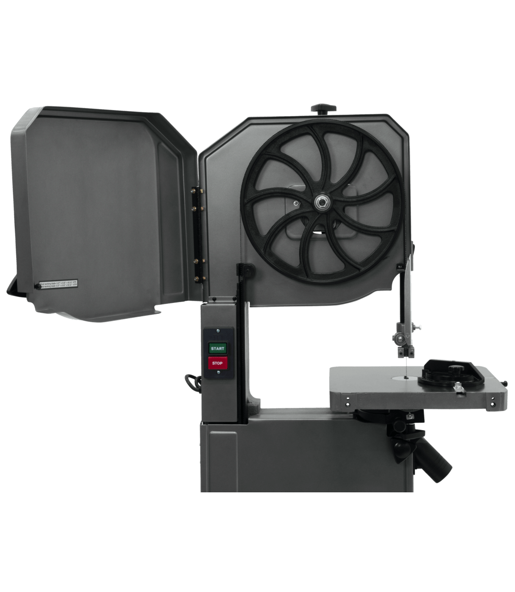 - Hinged wheel covers and convenient blade tensioning wheel for easy accessibility and fast blade changing and adjustments