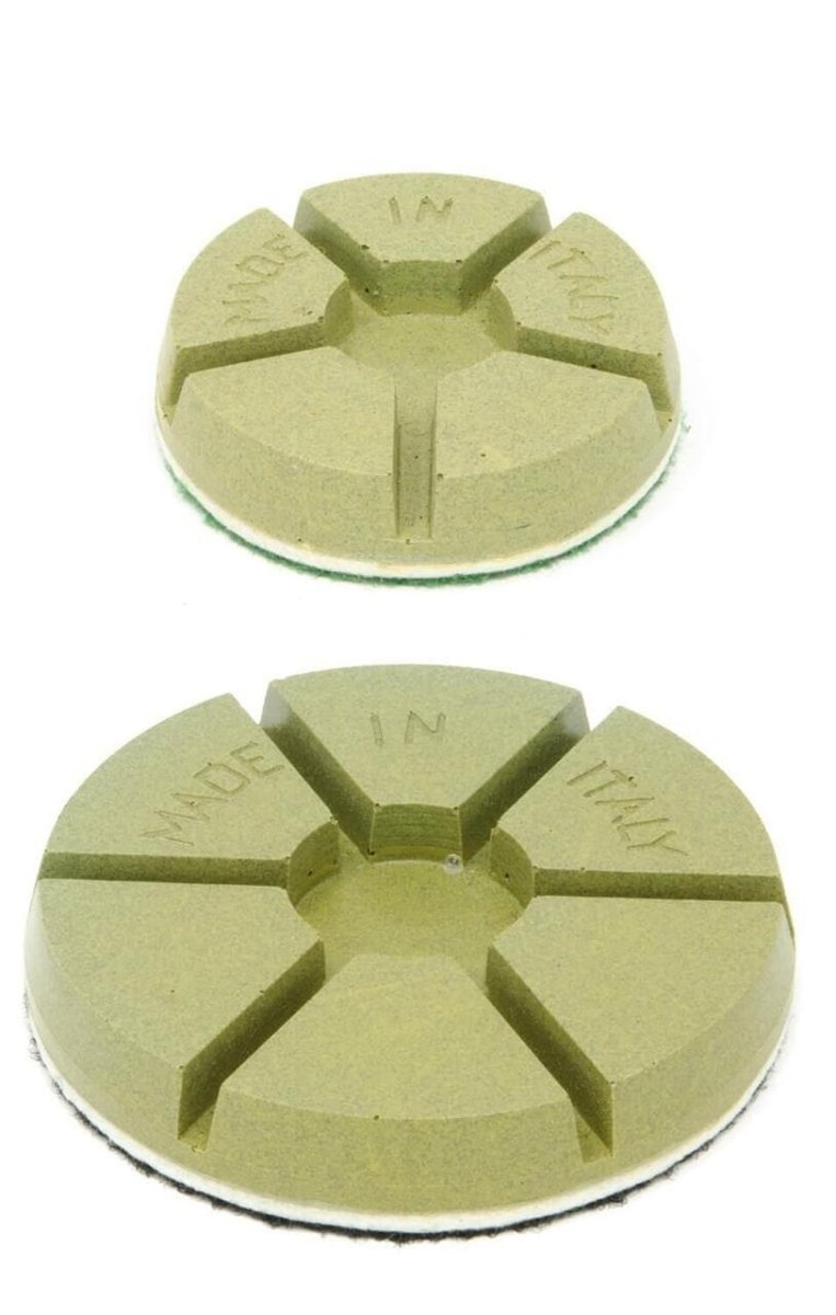 Resinbond diamond discs with greater thickness, ideal for grinding and polishing concrete and terrazzo floors. High performance suitable for both dry and water use. Long life.