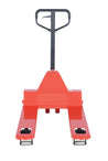Individual fork width is 7" wide. Wide loop control handle with lift, neutral, and lower functions provides fingertip control. Lifetime lubricated bearings. Hydraulic system has hard chrome plated pump piston with polyurethane seals. Suspension system has a heavy-duty thrust bearing. Complete with adjustable push rods, polyurethane wheels, steel load rollers and red baked-in powder-coated toughness.