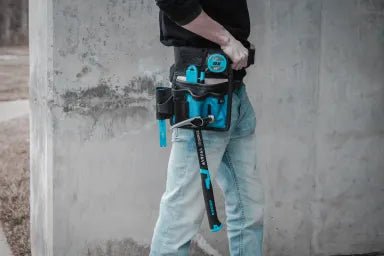 It is constructed from a combination of 1680D ballistic nylon and top-grain leather with PVC coating. It includes 4 dedicated pockets and 3 tool holders: hammer holder, tape measure holder & pencil compartments. The pouch is perfect for holding drywalling tools including but not limited to hammers, jab saws, utility knives, molding bars, sanding sponges etc. Kevlar® is a key component of the pouch. The pouch includes Kevlar® reinforced double row stitching as well as a Kevlar® reinforced pouch bottom. This Kevlar® design allows this pouch to handle the rigors of any jobsite. For more durability assurance the pouch is also equipped with hooks and rivets made from iron and electrophoretic coating. The pouch is also water and UV resistant, keeping it cooler and lighter during harsh weather conditions. The pouch includes thick tubing around its edges allowing it to maintain its original shape even after long term use. Overall, this fastener pouch is made durable and is meant to assist all professional tradesman.