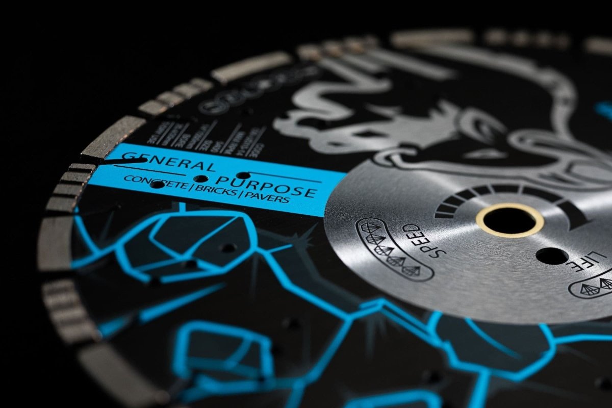 Engineered to cut quickly through a variety of materials including asphalt, concrete, and reinforced concrete. Ultra-hard cutting segments made from a blend of tungsten and diamonds for longer life. Engineered with grade A synthetic diamonds for a smoother faster cut. Perfectly balanced for a straight, true and clean cut. No overheating, warping or wobbling. Balanced steel core design. 100x stronger than hot pressed sintered blades. Cooling holes to avoid overheating. Distinctive blade design featuring clear and understandable safety blade usage information.