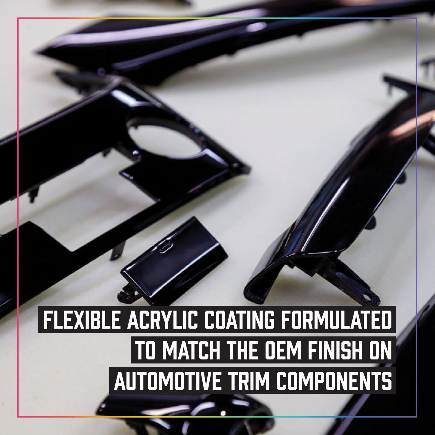 We designed our PBE flexible trim paint to be versatile and efficient. It dries to the touch in just 5 minutes and is ready for a top coat in 15 minutes. Our fast-drying formula works great on a range of materials, including plastic, rubber, metal, and chrome, making it perfect for automotive and industrial applications. This quick-drying paint allows you to finish projects faster while achieving lasting quality.